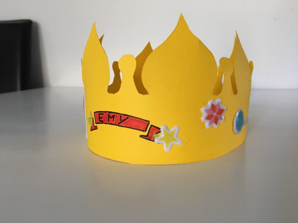 - Vous trouverez sur internet des dizaines de patrons pour votre couronne. Choisissez celui que vous préférez et imprimez le. Si votre enfant est assez grand il pourra choisir. Si vous avez l’âme d’un artiste, vous pouvez dessiner vous même votre couronne. Gardez une certaine symétrie pour un effet plus propre.