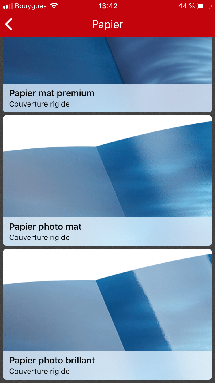 Vous pouvez choisir le type de votre album : j’ai choisi de tous les faire en format BD pour un gain de place au fil des années. Vous avez le choix du papier, satiné, mat, brillant…. de l’épaisseur des feuilles…