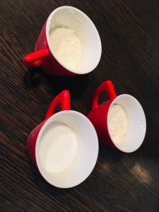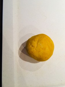 Pour se faire je mets deux tasses de farine une tasse de sel et je complète avec de l’eau jusqu’à obtenir une belle boule de pâte.