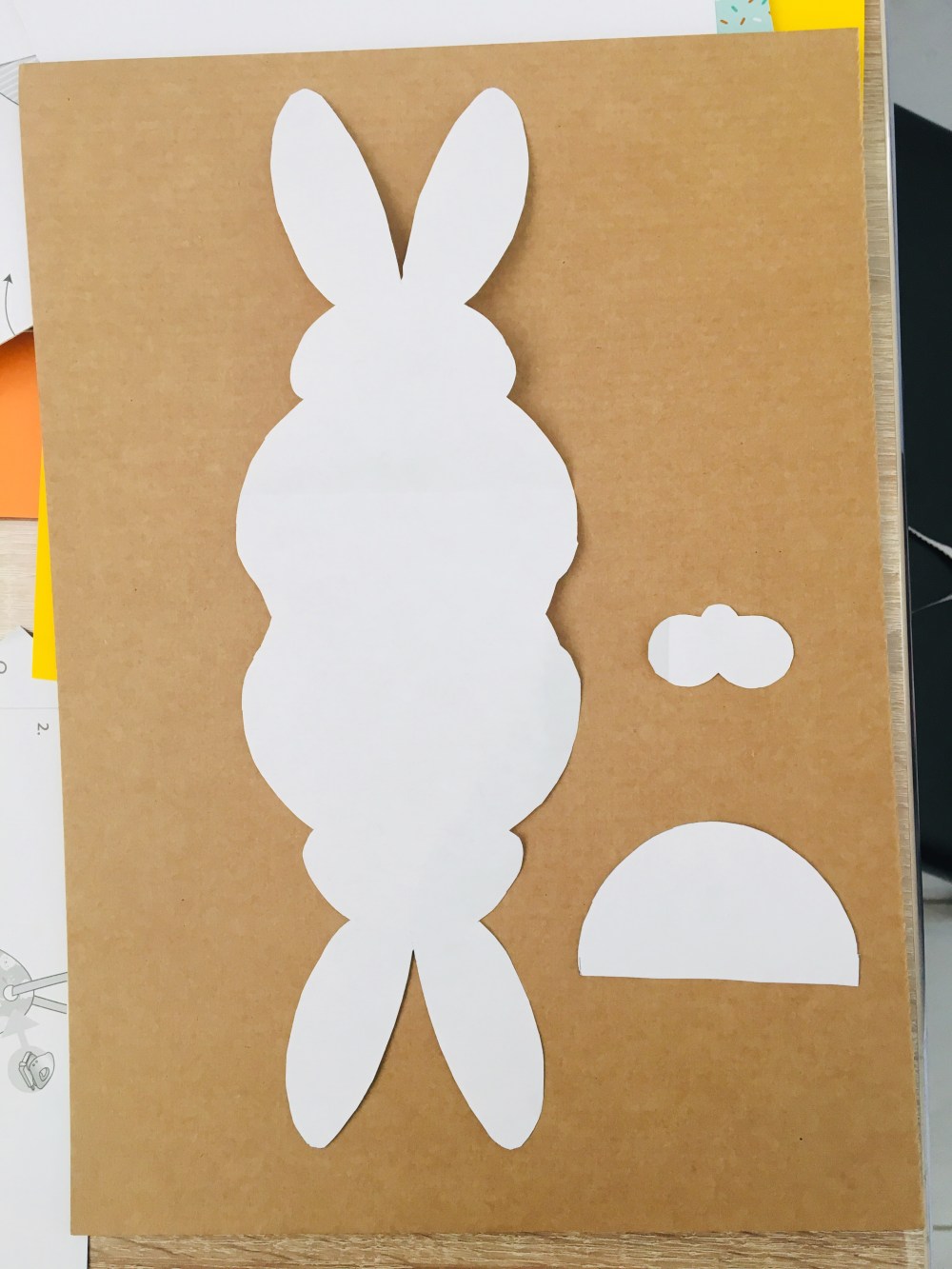 Le petit lapin est simple à realiser il suffit de dessiner et découper un patron puis le reproduire sur un support cartonné. Pour une parfaite symétrie dessinez le haut uniquement sur une feuille pliée en deux puis découpez.