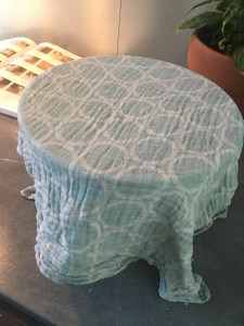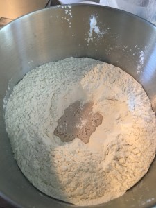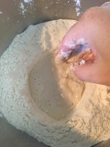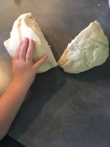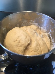 Formez une boule et recouvrir d’un linge humide et laissez reposer 1h30 environ. La pâte doit doubler de volume.