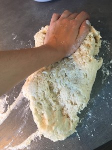 Ajouter ensuite le reste de lait et le beurre. Malaxez à la main jusqu’à obtenir une pâte bien lisse. Si elle colle ajoutez de la farine, du lait si elle est trop sèche.