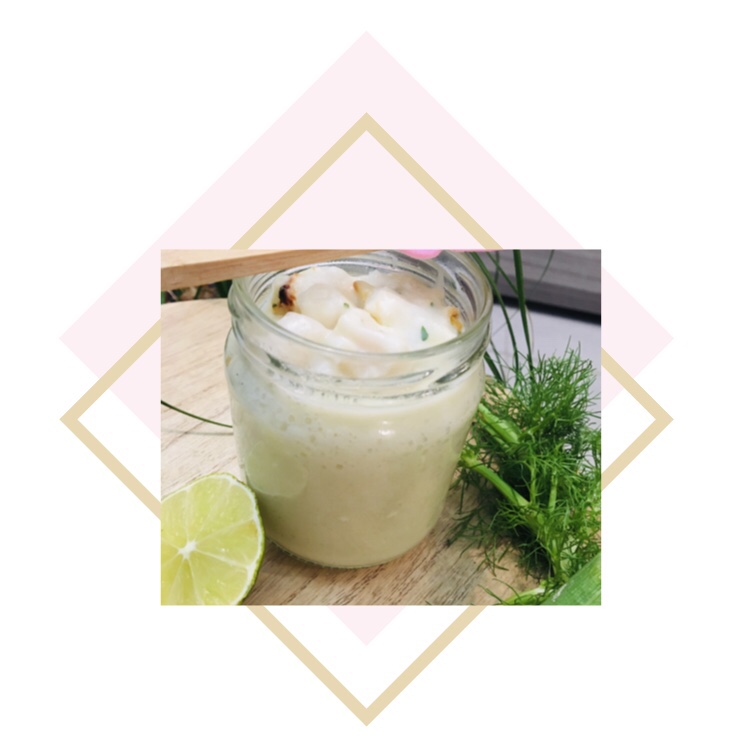 Aujourd’hui, le fenouil est à l’honneur. Ce légume est possible pour bébé dès ses 6 mois. Je l’ai accompagné de saint Jacques, que vous pouvez introduire à partir de ses 12 mois, mais vous pouvez faire avec un poisson maigre dès ses 6 mois. J’ai mixé le fenouil le cuit à la vapeur avec l’eau de cuisson. Une goutte de citron pour assaisonner et c’est tout! Le goût anisé remplace largement le sel. J’ai laissé les saint Jacques intactes sans les mixer pour plus de mâche mais quand elle était plus petite je mixais le poisson dedans. Avec le cabillaud, la lotte… suivre les recommandations selon l’âge de votre enfant pour le nombre de grammes de poisson. 10,15,20 ou 30g. Puis j’y ai ajouté une vache kiri, possible à 6 mois. Je n’ai pas voulu mettre de pomme de terres dedans pour cette fois mais servir le féculent à côté mais il est possible d’en ajouter. Ne pas dépasser 1/3 de pomme de terre dans la purée comparé aux légumes pour le côté digeste. Voilà vous savez tout pour cette purée onctueuse 😉 Le fenouil est top : Le fenouil est reconnu pour traiter les troubles digestifs. Il permet entre autre de lutter contre les ballonnements, le manque d’appétit ou l’aérophagie et de stimuler les muscles du côlon. Il est source de vitamines C, peu calorique, riche en fibres et folates ( top pour la grossesse) et potassium…