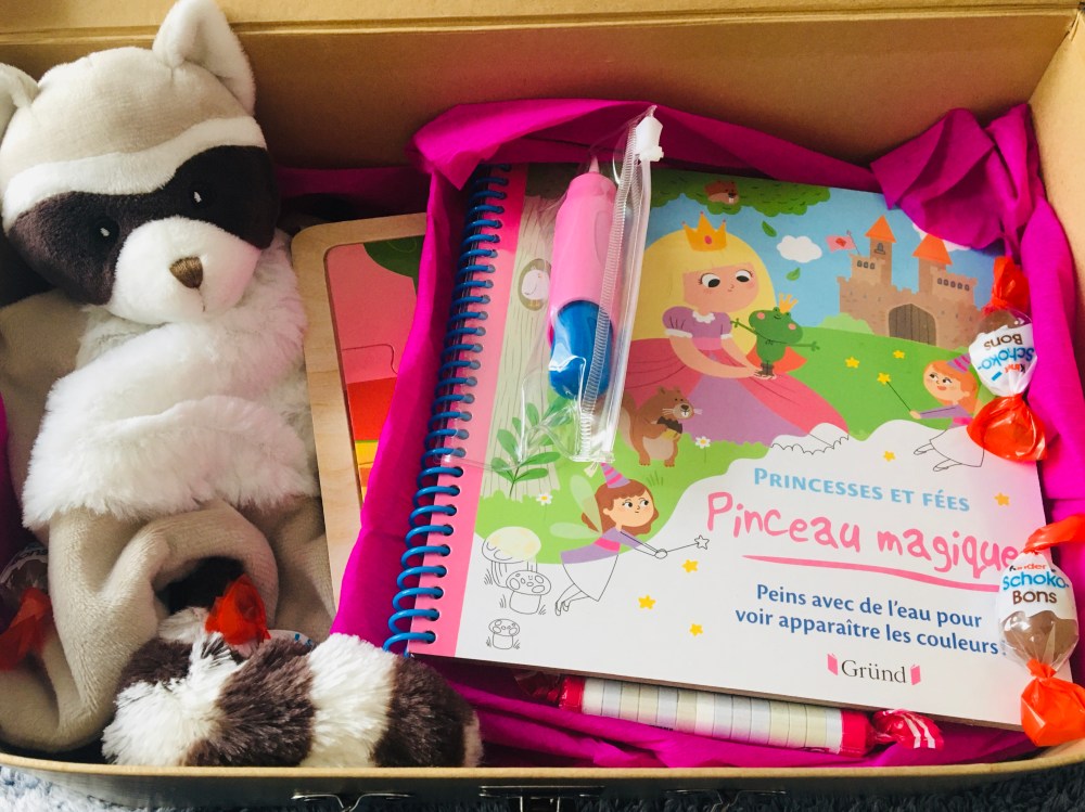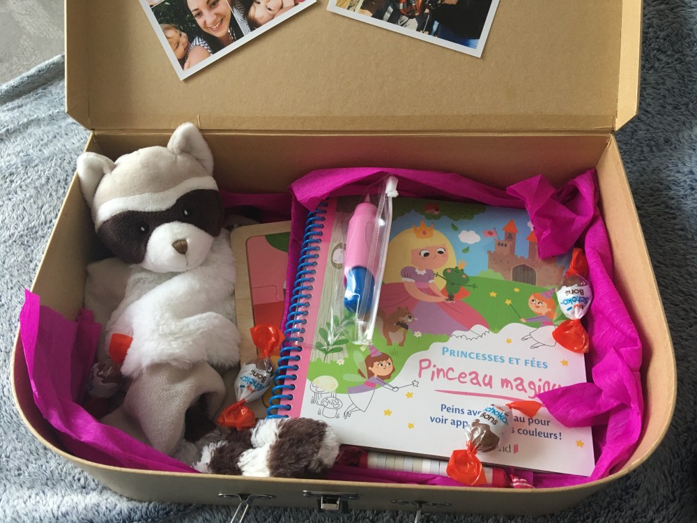 Finalement je rajoute ces quelques lignes une semaine après avoir accouché: la boîte a été une tuerie. Le fait qu’elle soit en forme de petite valise elle la promenait partout chez les gens, la famille, à la maternité à chaque visite. C’était sa boîte à trésor et elle a beaucoup aimé. Je suis super heureuse qu’elle en ai autant profité car c’est vrai que des fois on fait des trucs qui nous plaisent mais le résultat n’est pas toujours là 🙂