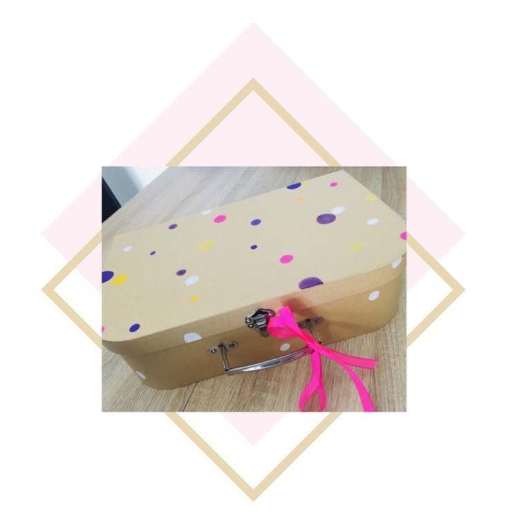 Finalement je rajoute ces quelques lignes une semaine après avoir accouché: la boîte a été une tuerie. Le fait qu’elle soit en forme de petite valise elle la promenait partout chez les gens, la famille, à la maternité à chaque visite. C’était sa boîte à trésor et elle a beaucoup aimé. Je suis super heureuse qu’elle en ai autant profité car c’est vrai que des fois on fait des trucs qui nous plaisent mais le résultat n’est pas toujours là 🙂