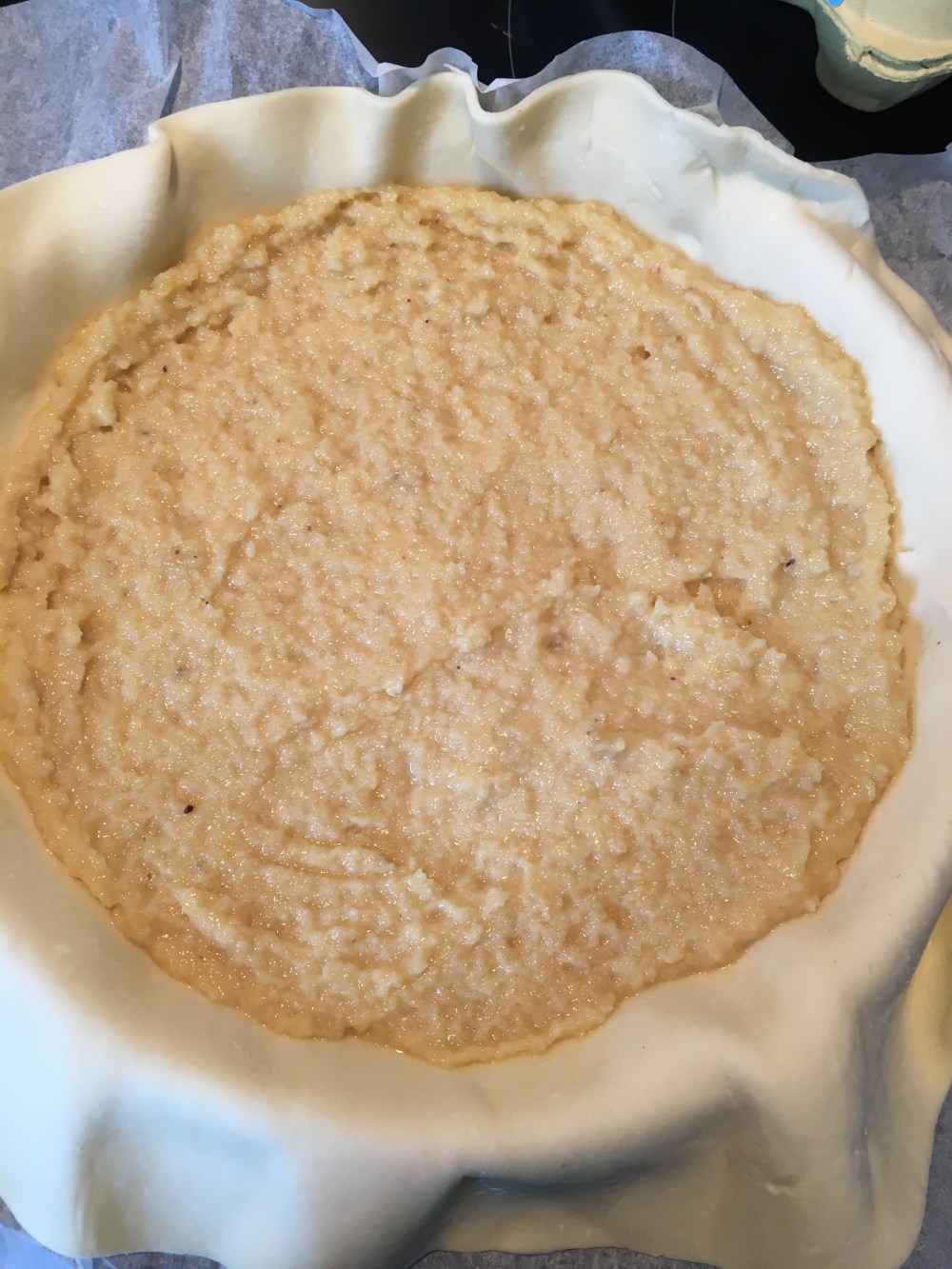 Disposez votre pâte feuilletée dans le moule et versez y la préparation.
