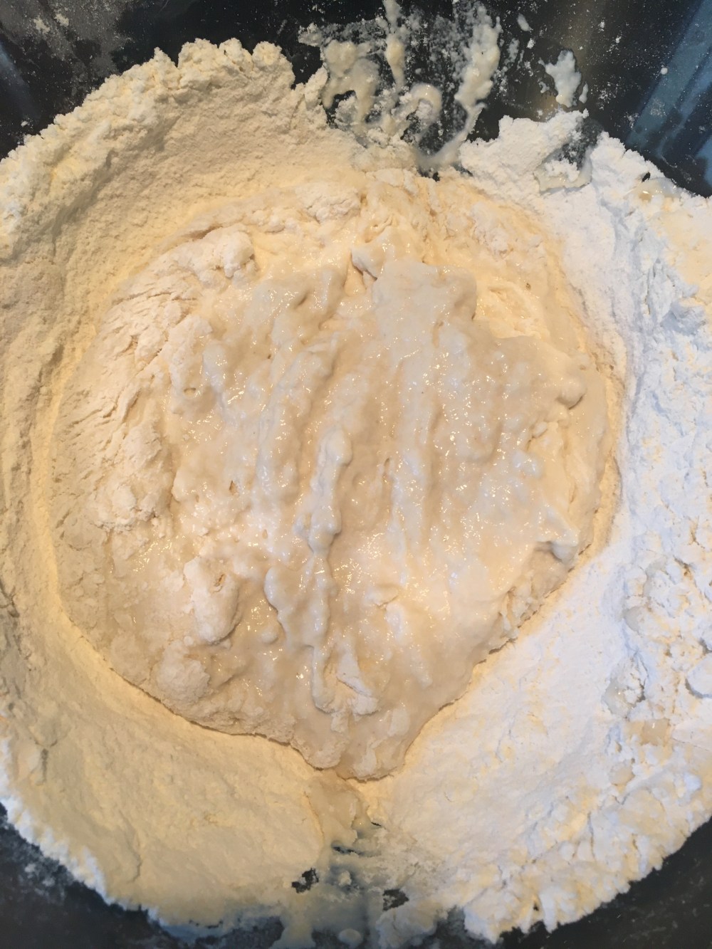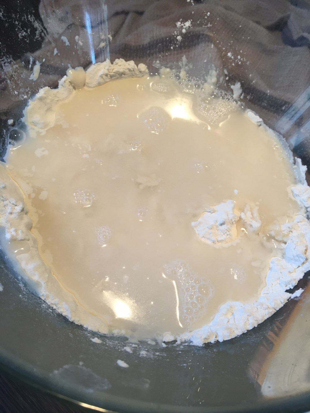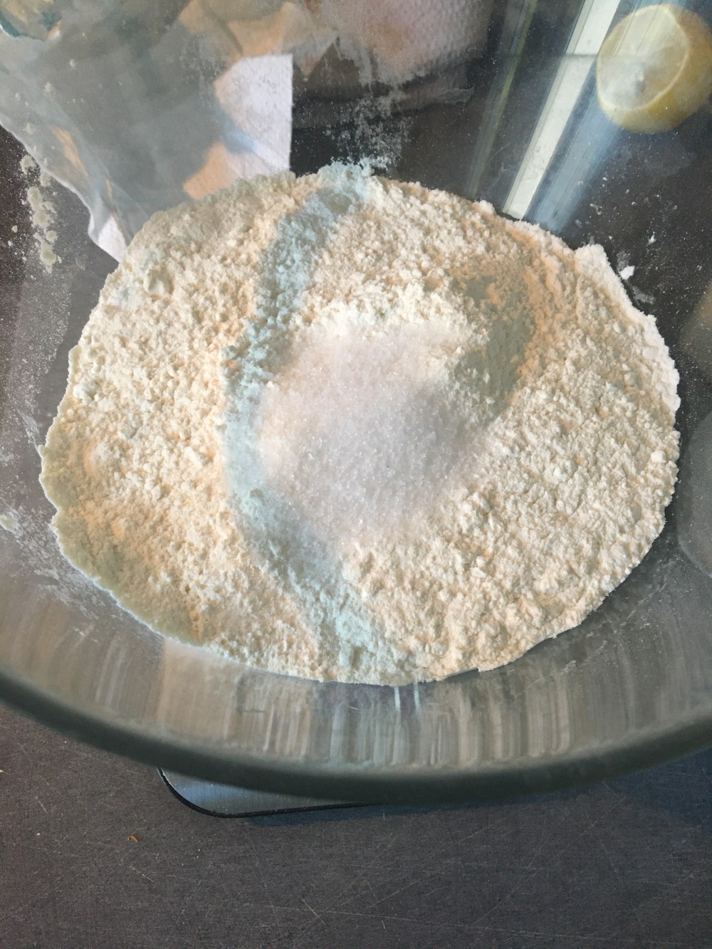 Commencez par mélanger la farine et le sel dans un saladier en verre. Ne pas utiliser d’inoculer qui empêchera la levure de bien monter.