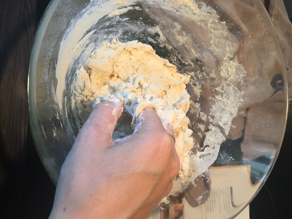 Mélangez avec le bout des doigts en ajoutant autant de farine nécessaire pour obtenir une pâte molle et lisse.