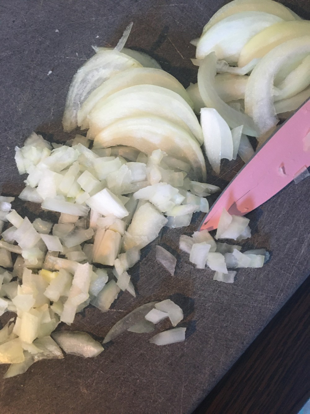Émincez ensuite votre oignon.