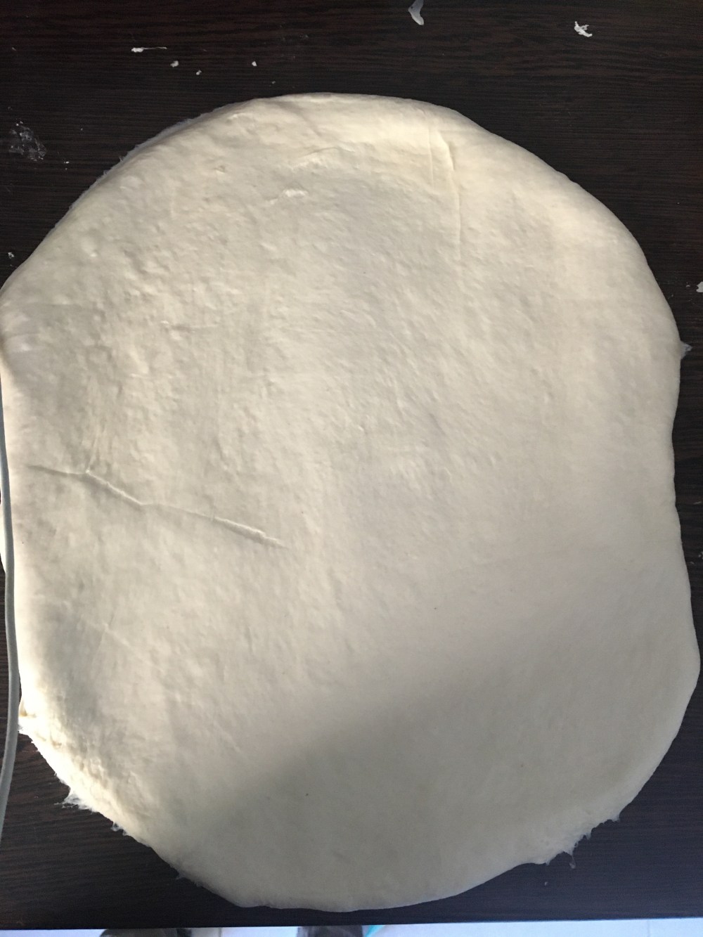 Lorsque votre pâte a gonflé écrasez la plusieurs fois avec votre poing. Puis étalez la sur 25 cm par 45 cm.