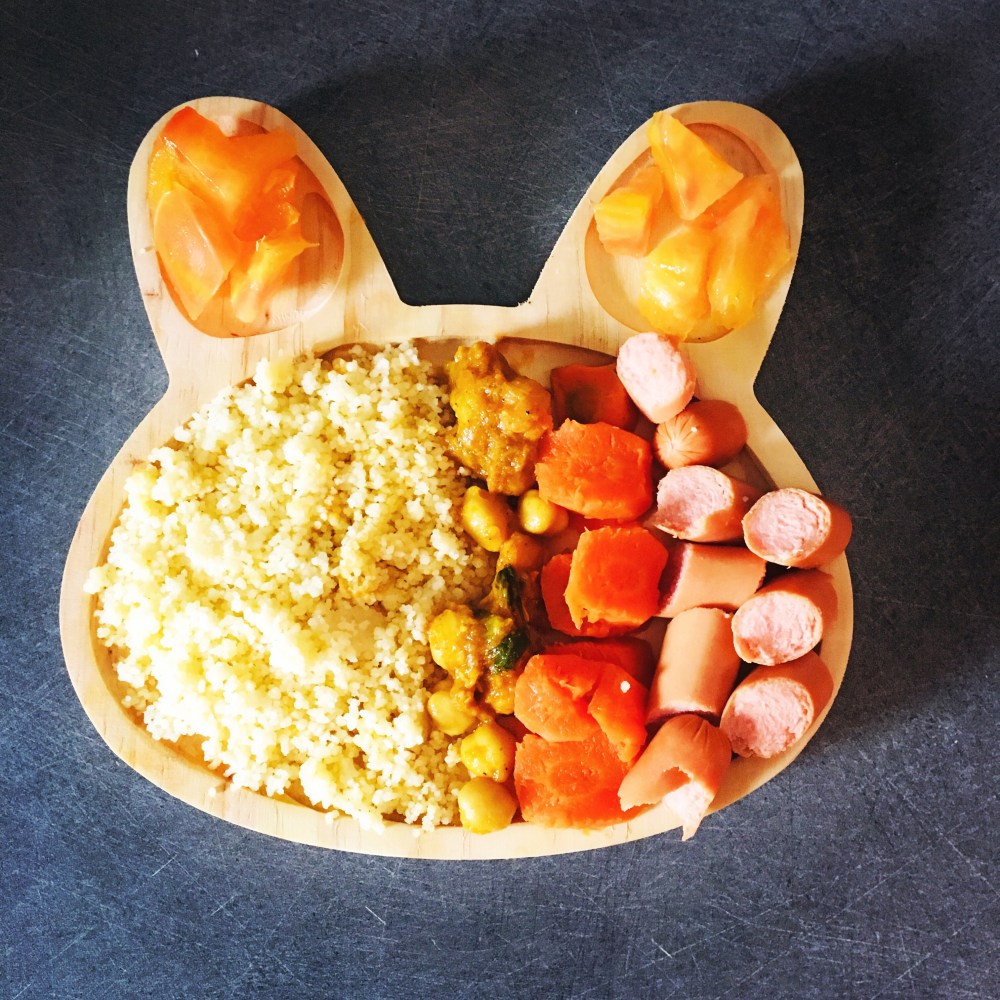 Suite à de nombreux messages, je suis en train de vous préparer un article sur des astuces pour faire manger des légumes à vos enfants! J’espère vous le sortir rapidement, mais je suis pas mal occupée par le travail et la vie la semaine 🙂 aujourd’hui c’était du rapide, petite purée mousseline, brocolis vapeur, et poulet sauce tomate oignon. Un petit morceau de roquefort, son fromage préféré, des petits morceaux de poires en dessert. J’alterne soit entrée soit fromage en général ça suffit à son appétit!