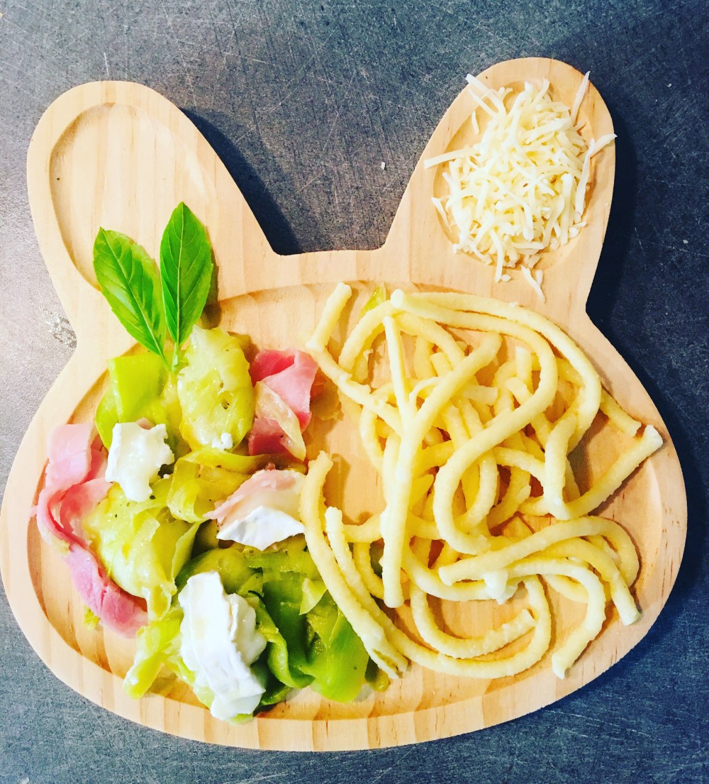 Assaisonnée de basilic, j’ai rajouté des petits morceaux de chèvre. Mais ça se marie aussi très bien avec des carottes, des pignons et de l’ail, des crevettes et plein d’autres idées d’associations! Ça se mange aussi bien chaud que en salade froide. Le but, y associer un petit féculent pour avoir un repas complet pour mon bébé. Elle a tout dévoré 🙂 une bonne façon de faire apprécier les courgettes! Bien évidement il y a aussi la déclinaison carbonara