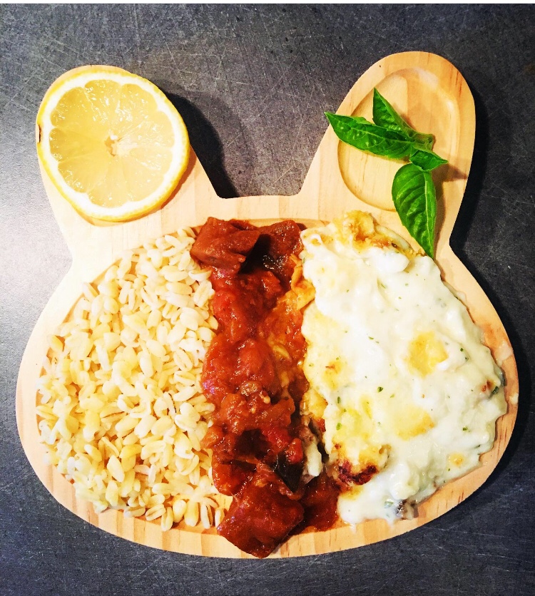 Petite idée menu toute simple: du blé, une coquille saint Jacques, et un gratin d’aubergines : pour le réaliser il suffit de cuire à la poêle des aubergines en petits cubes avec de l’ail des oignons puis ajouter de la tomate et du concentré. Une fois cuit mettre au four une 15 aine de minute pour faire gratiner le fromage. Bon appétit!