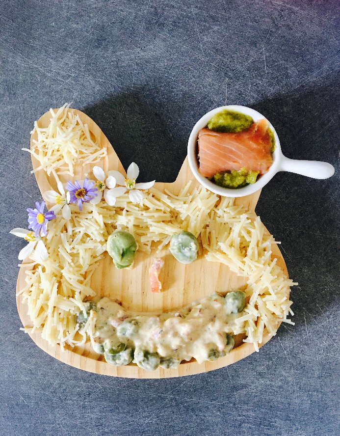 Idée de repas du jour : les fèves. Cette légumineuse est très riche en protéines et offre de nombreux bienfaits. Reconstituante, nutritive, tonique. Riche en vitamines B et C, en potassium et en fer et magnésium. Sources de fibres, anti coliques et donc parfaites si vous allaitez ou votre enfant. Pour eux il faut attendre 1 an. Elles sont également délicieuses en salades. Aujourd’hui je les ai accompagnées de pâtes complètes cheveux d’anges. Avec en entrée un purée d’asperges saint Moret dans un rouleau de saumon.