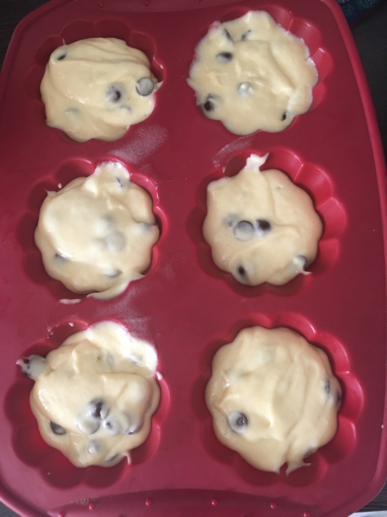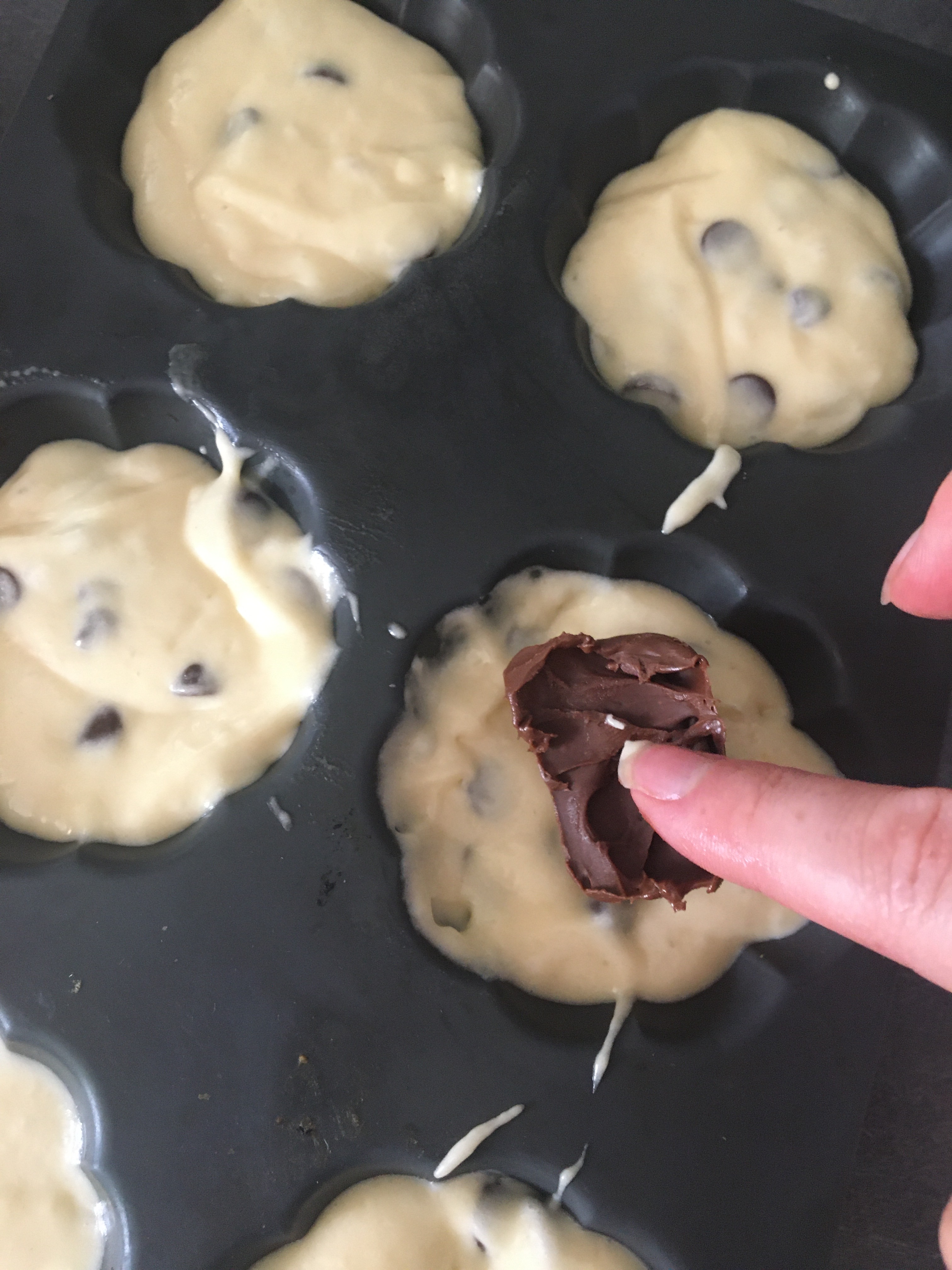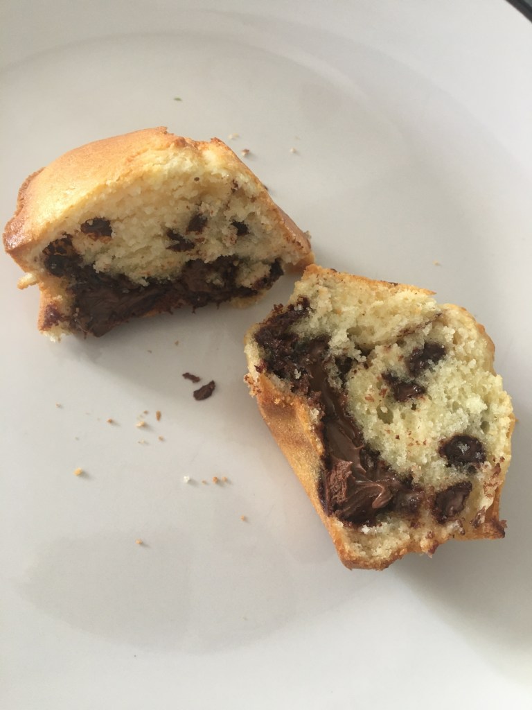 Ingrédients : – 12 cuillères à café de Nutella – 100g de beurre – 2 œufs – 100g de sucre en poudre – 1 yaourt nature – 1 pincée de sel – 250g de farine – 100ml de lait demi écrémé – 1/2 sachet de levure chimique – 1/2 cuillère à café d’extrait de vanille – 150g de pépites de chocolat