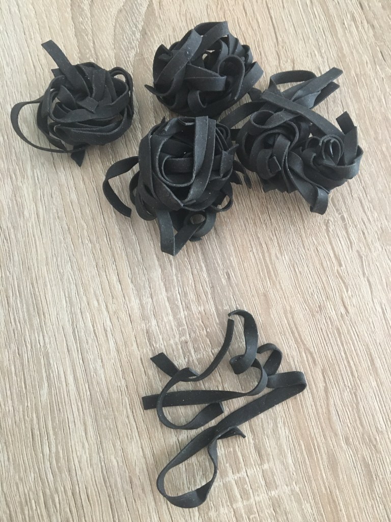 Et puis les pâtes, on sen sert aussi pour les activités, les bacs sensoriels, et etc. Bref les pâtes, c’est la vie ici!