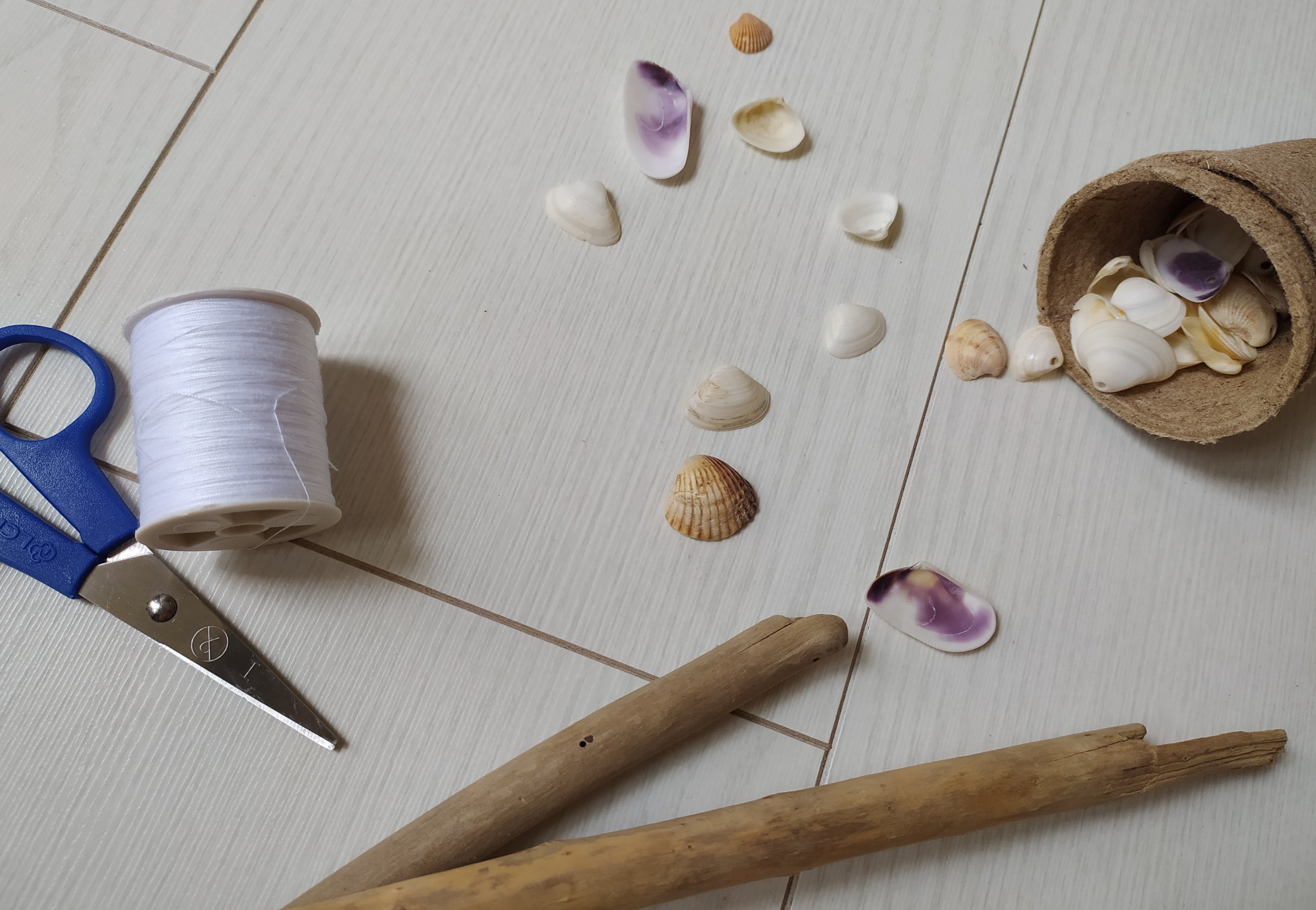 Gardez un souvenir de vos vacances au bord de la mer en fabriquant un mobile carillon en bois flotté et coquillages.