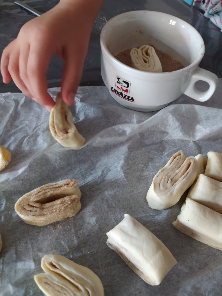 Ingrédients : 1 pâte feuilletée – sucre – cannelle- beurreDérouler la pâte feuilletée et y étaler le beurre fonduSaupoudrer généreusement de mélange sucre-cannellePlier chaques côtés de la pâte sur elle même et répéter l’opération précédente (beurre fondu + sucre-cannelle)Ramener chaques côtés vers le centre comme sur l’image puis plier une dernière fois en deux pour obtenir un long boudin. Placer-le au congélateur 10 bonnes minutes pour le faire durcirCouper des morceaux d’environ 1 cm d’épaisseurTremper les palmiers dans le reste de sucre-cannelle et les disposer sur une plaque de papier sulfurisé. Enfourner à four chaud 15 à 20 minutes à 180ºCIl ne reste plus qu’à déguster ◍❛ ᴗ ❛◍