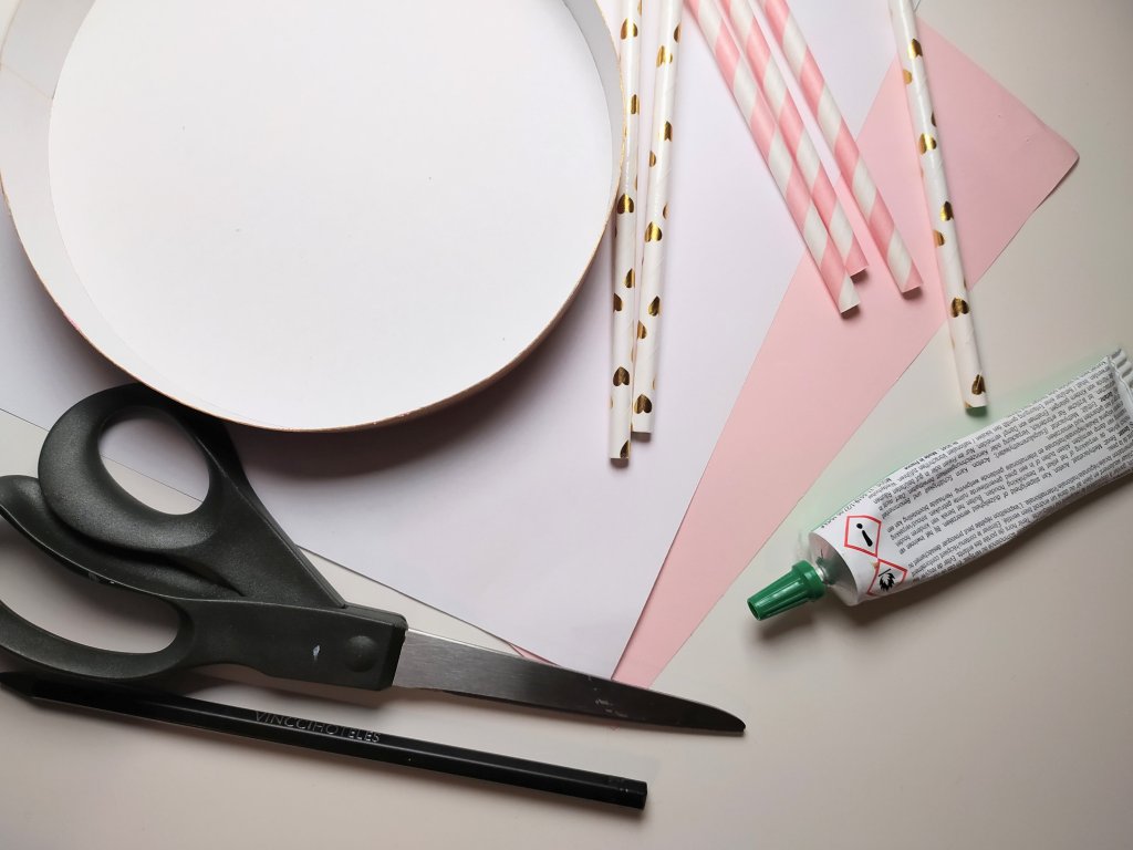 Matériel utilisé : pailles en carton, papier de couleur, boîte en carton de fromage, colle, crayon, ciseaux.