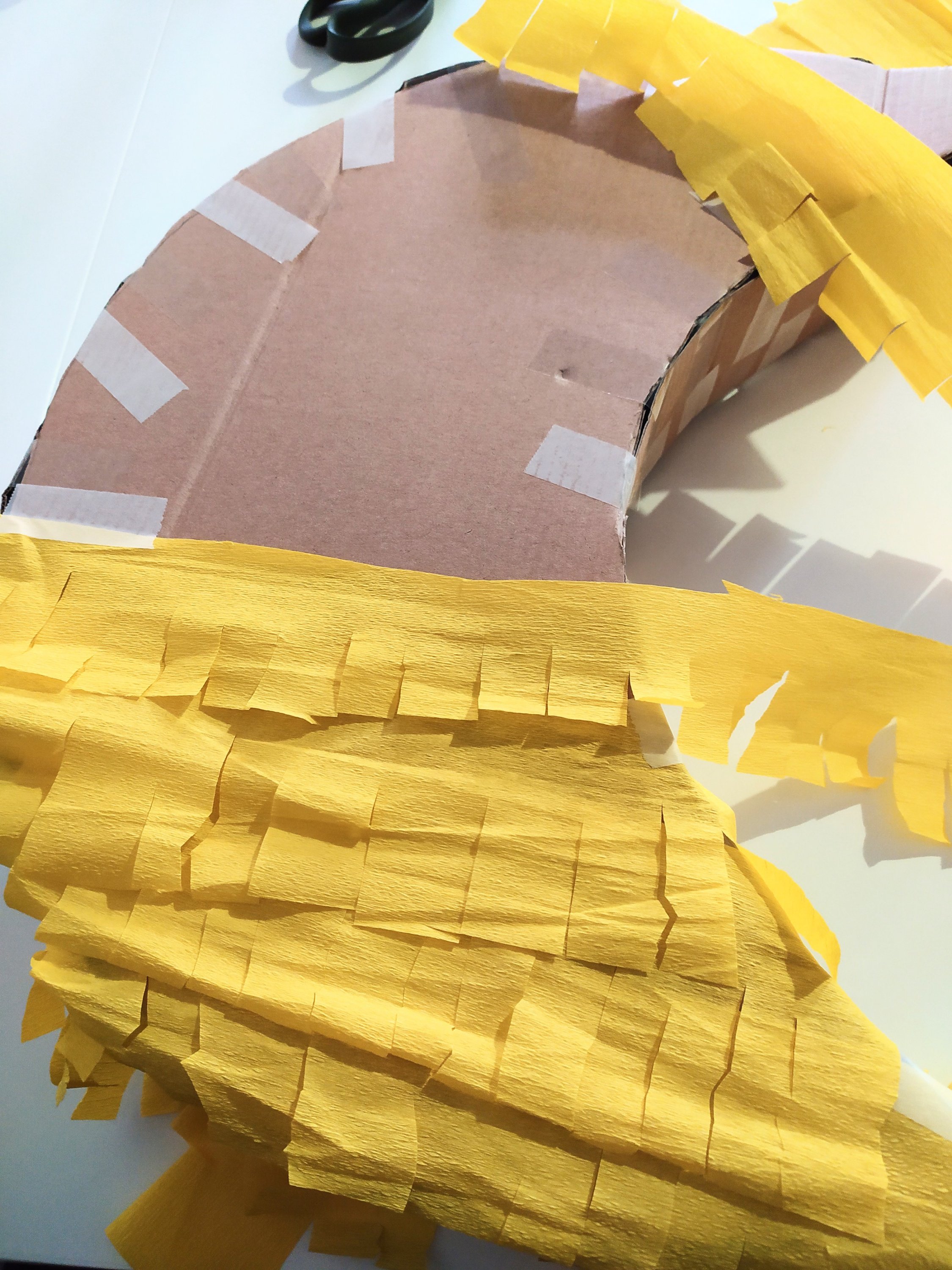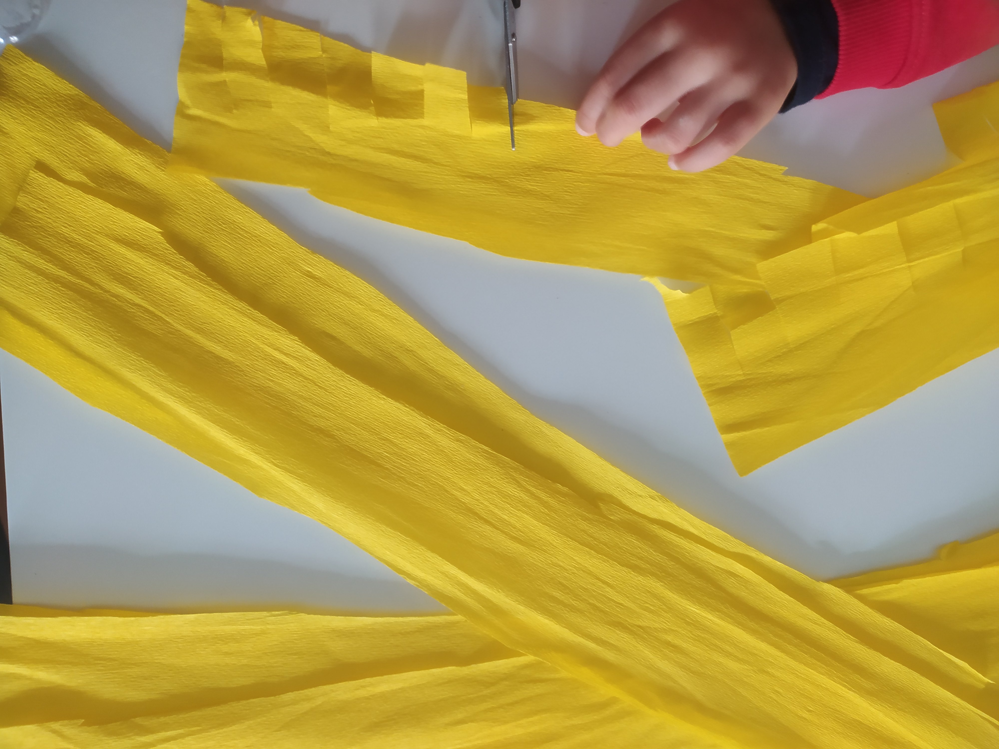 Matériel : carton, scotch, papier crépon et ciseaux.