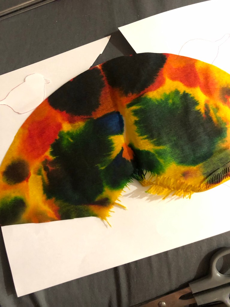 Une fois les filtres secs, découpez une forme d’animal dans une feuille. Posez la sur le filtre et découpez autour. Vous pouvez décalquer les formes.