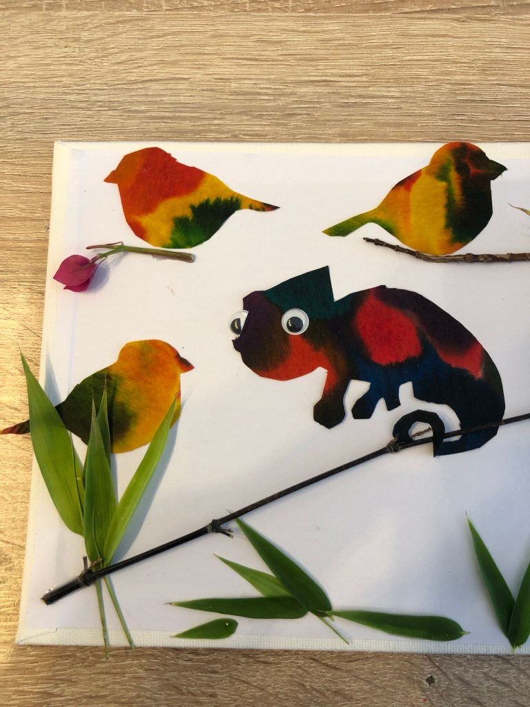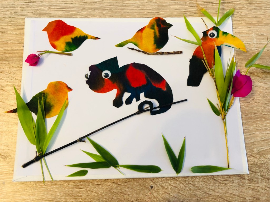 N’hésitez pas à coller du feuillage ou des petites branches. Cela fait du relief