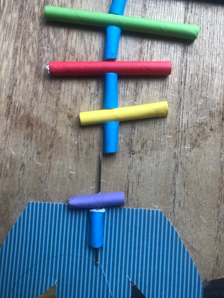 La queue et la tête sont découpée dans une feuille cartonnée. Soit blanche et l’enfant peut la peindre, soit de couleur.