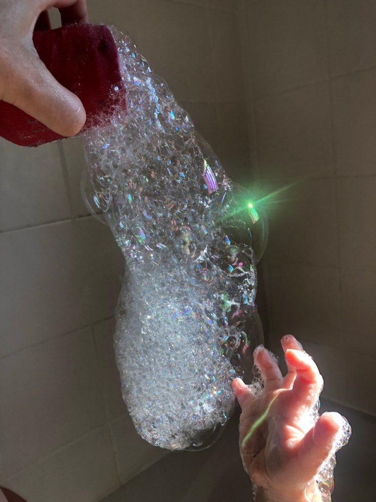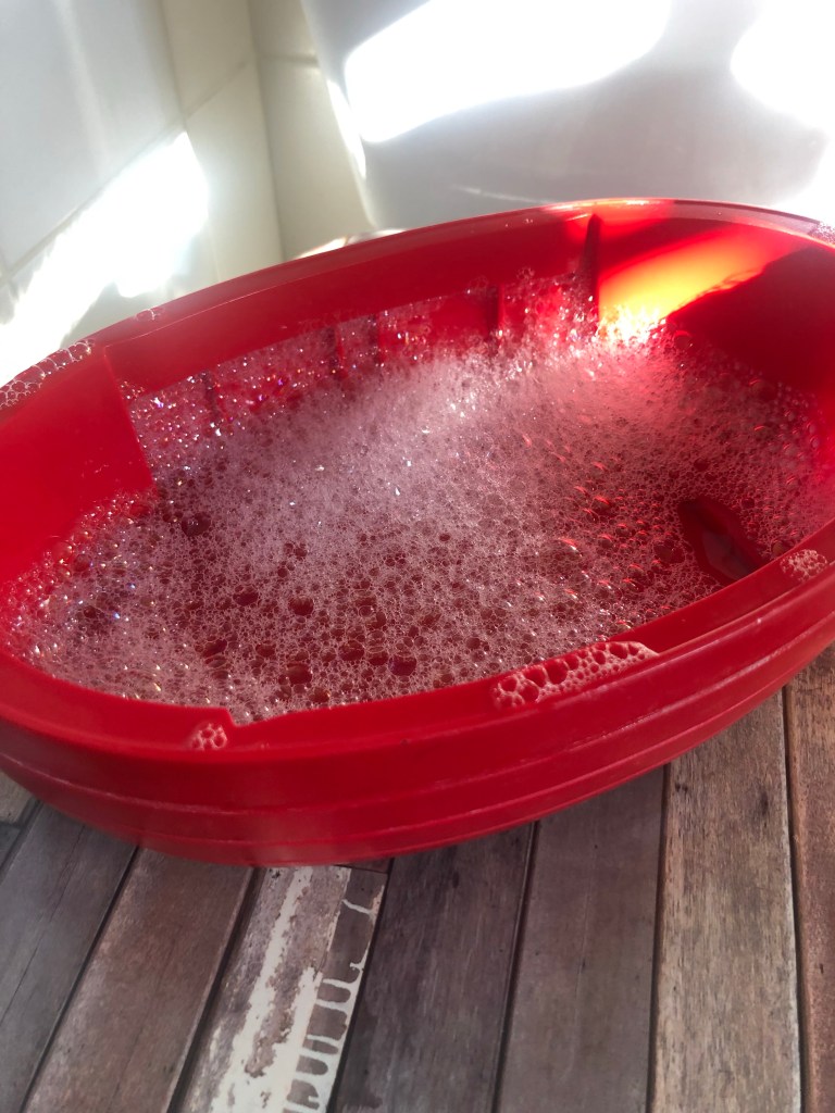 - Du liquide vaisselle ( certains gel douche fonctionnent très bien aussi mais il faut essayer selon les marques et compositions )