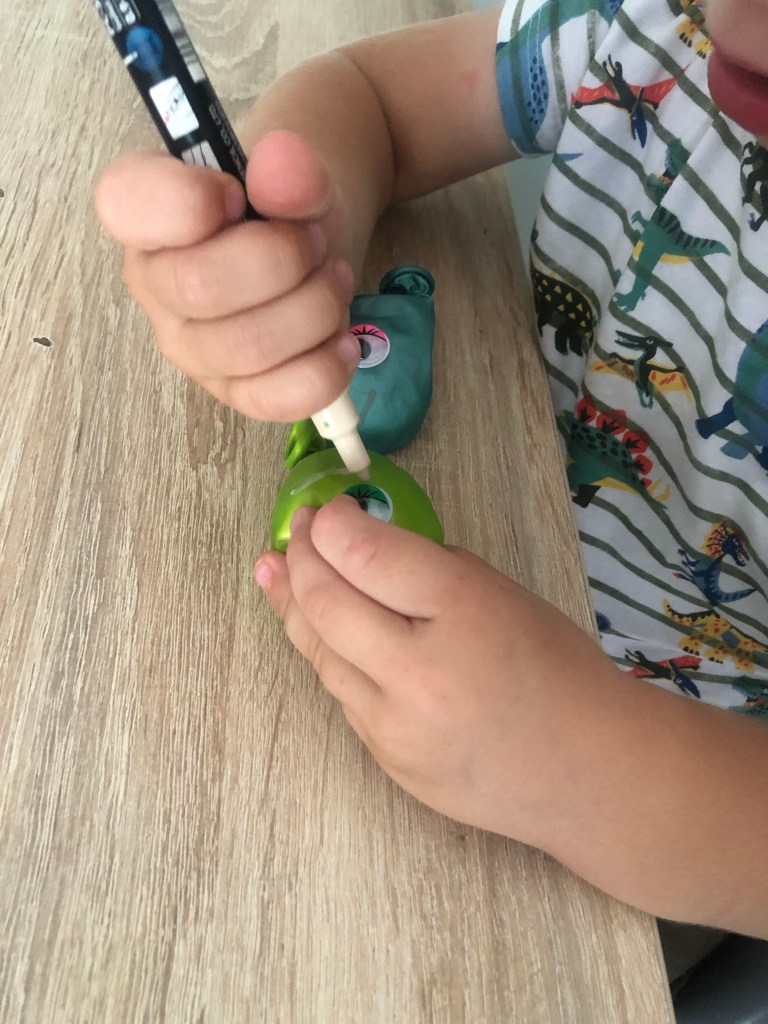 L’enfant décore ensuite le poisson. La texture et la tenue dans sa main est relaxante et agréable. Le feutre peut s’effacer pour recommencer