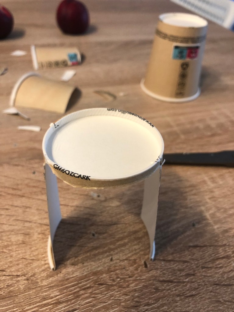 Découpez dans le gobelet de manière à ne laisser que le bracelet de chaque côté
