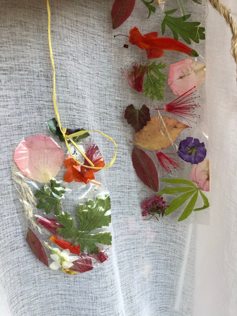 Commencez par remplir un contenant en partant à la recherche de feuilles et fleurs