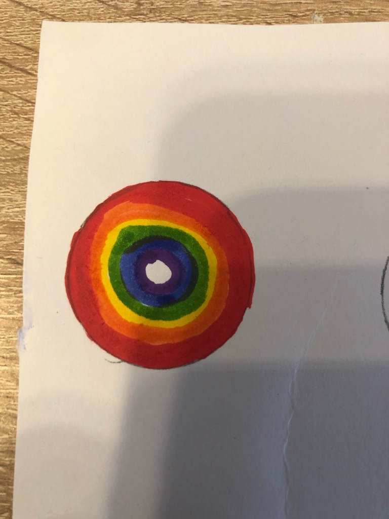 Peindre ensuite avec les couleurs du ventre à l’extérieur, en laissant le milieu ouvert en découpant. Le faire en double