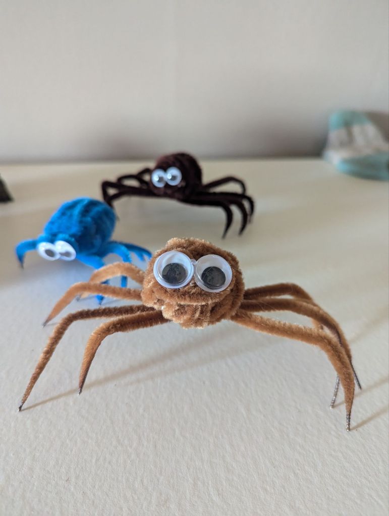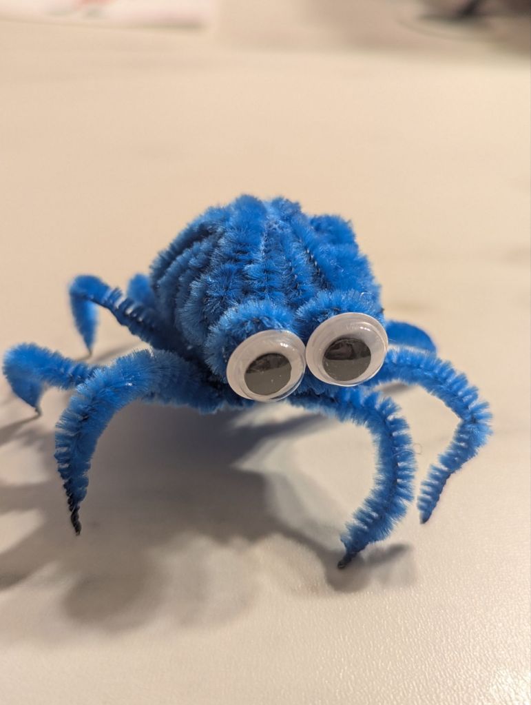 Puis pliez en deux les 4 cotillons et tordez d’un tour pour les attacher au centre. Coller au milieu le corps de l’araignée. Ajoutez les yeux. Avec un briquet chauffez le bas des pâtes pour les rendre plus pointues. Le tour est joué !