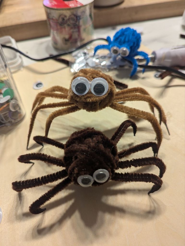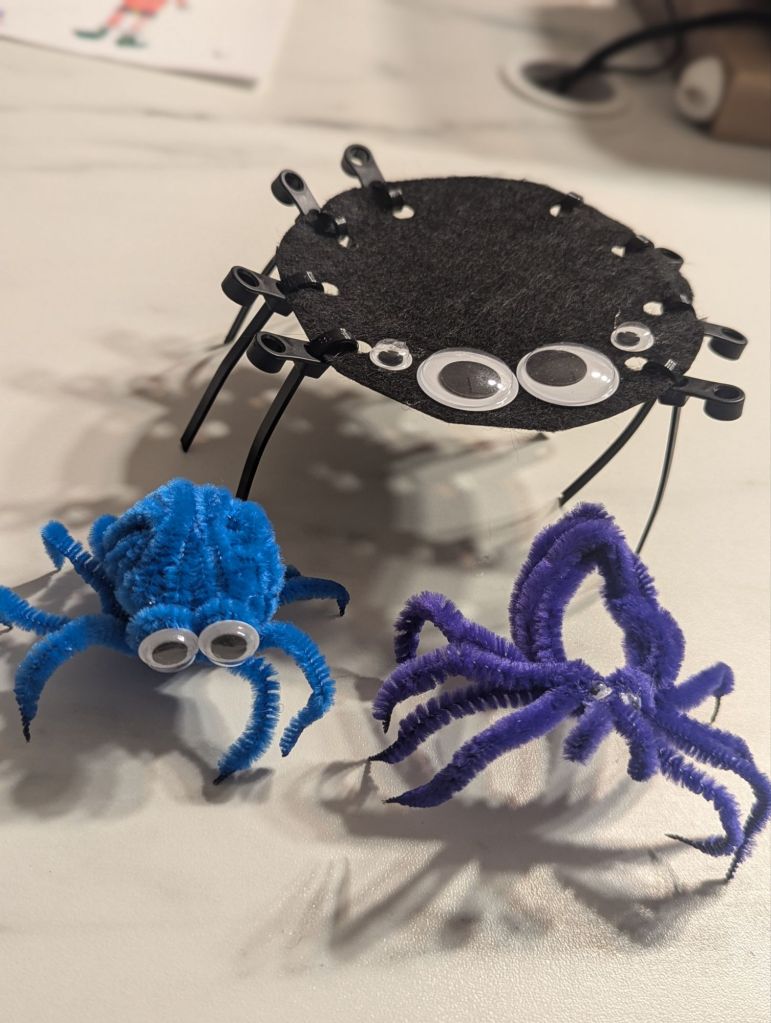 L’entourer de cotillons jusqu’à ne plus voir le blanc. Prendre 4 cotillons et poser l’araignée au centre. Ajustez la taille en fonction de la longueur des pattes désirées.