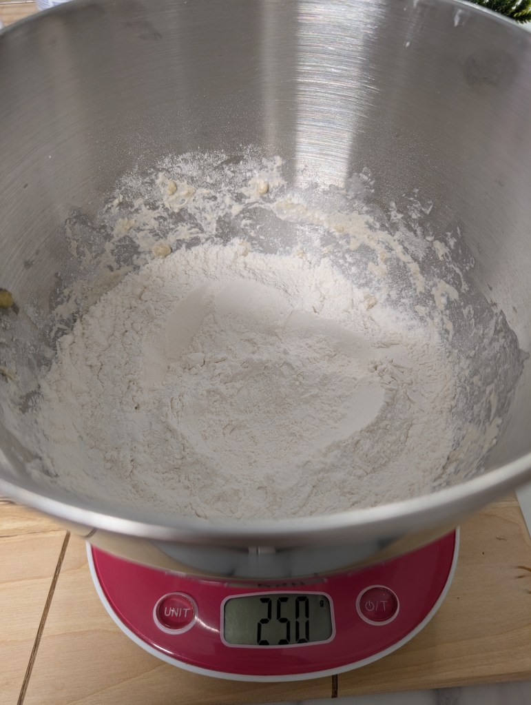 - 250 g de farine (type 00 idéalement, sinon farine tout usage)