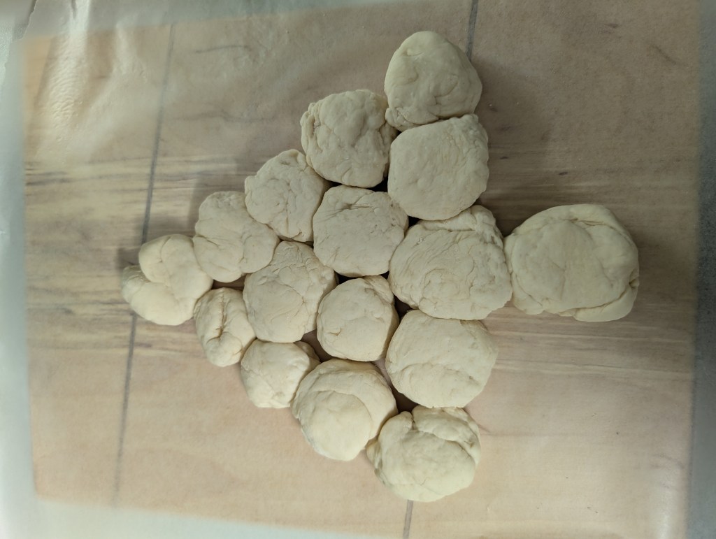 Il te faudra réaliser 14 boules de la taille d’une balle de ping pong environ.